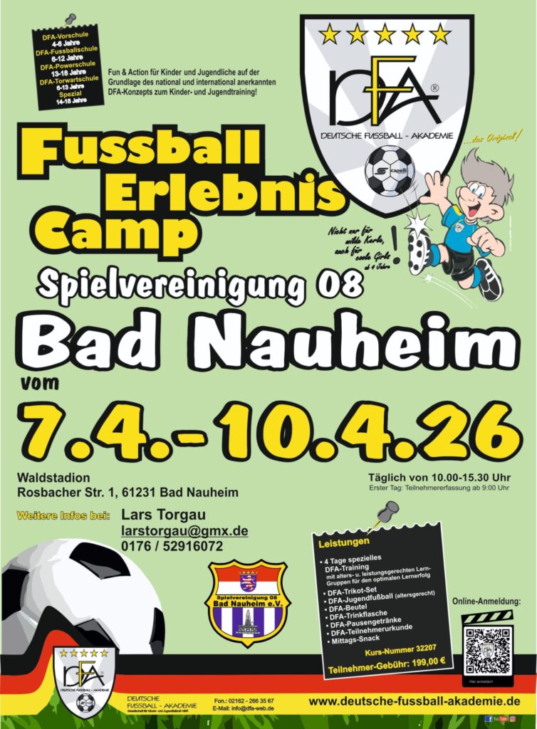 Die Deutsche Fußball Akademie und die Spvgg08 freuen sich, ein gemeinsames Fußball Camp im Waldstadion während der kommenden Osterferien anzubieten. Ab sofort ist die Anmeldung für interessierte Teilnehmer möglich!